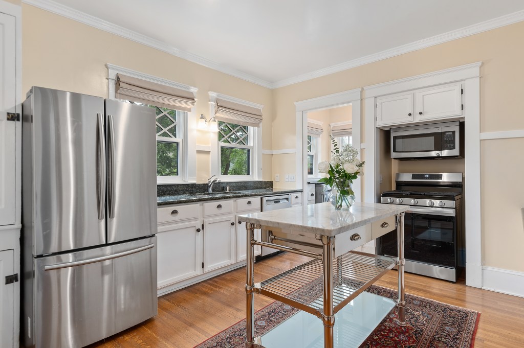 Throughout the house, immense improvements have been made since I last visited. Dual-paned windows have replaced the originals, and full-house air conditioning has been installed, adding quiet and comfort while staying true to the original look and feel. Even bigger changes include a newly built, architecturally equivalent garage, plus a new interior staircase leading down to the basement, which has been finished to create ample additional living space. Additional history has been uncovered as well.
